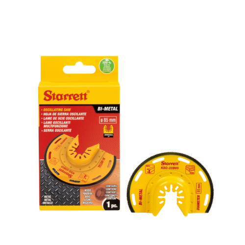 Starrett Bi-Metal Oscillating Semi-Circle Blade with a curved edge that allows for long, straight cuts with better control. Ideal for flush cutting against surfaces, trimming door jambs or cutting flooring around obstacles. Provides a larger cutting surface compared to narrow plunge blades, improving efficiency. Suitable for cutting drywall openings for electrical boxes, trimming flooring or panels flush to walls, cutting through wood with embedded nails during demolition, making long straight cuts in sheet materials, and working on rounded surfaces such as furniture, columns, drywall and plaster. Universal fitment compatible with most popular brands of multi-tool machine (not compatible with Starlock).